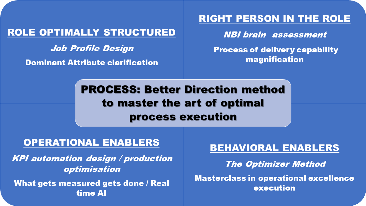 Our advisory services are anchored in principles of sound management of operational risk focused to optimising people, processes and systems. How to apply knowledge is at the heart of what we do. Business growth and sustainability is key to the Better Direction methodology (The Optimizer Method) and we endeavour to close the operational execution gap created by the imbalance blind spot where corporates thrive in one or two but not all three areas (People / Process / Systems) of sound management of risk.